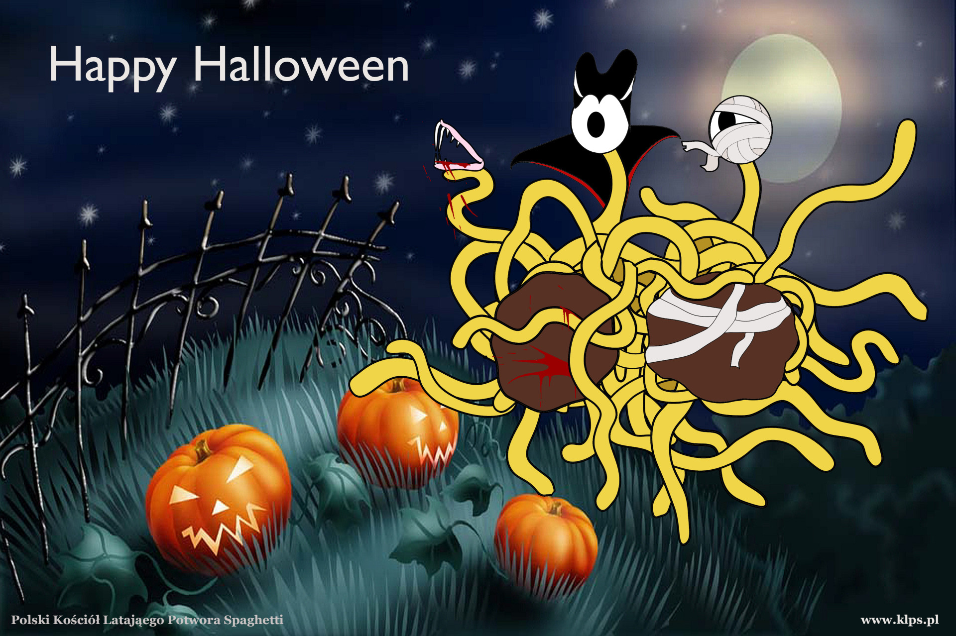 HALLOWEEN jest ważnym świętem Pastafarian, ponieważ upamiętnia on czasy, gdy wolni Piraci wałęsali się po całej Ziemi. Piraci byli Jego Narodem Wybranym, a ich malejąca ilość bezpośrednio wpłynęła na otaczający nas świat. Bezpiecznie można przyjąć, że prawdziwy zalew trzęsień ziemi, huraganów i innych katastrof naturalnych w ostatnim okresie, jak również pojawienie się globalnego ocieplenia, można w całości przypisać alarmującemu spadkowi liczby Piratów na świecie.